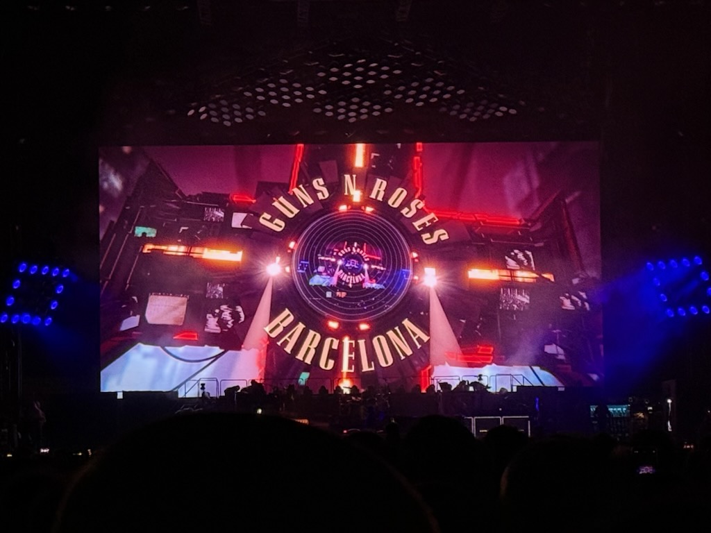 That four-year-long reunion jaunt was then appropriately coined Not in This Lifetime… Now, almost ten years later, the Gunners have embarked on their third mammoth global odyssey with (mostly) the same lineup; one they are choosing to cheekily call Because What You Want and What You Get Are Two Completely Different Things. The trek had a stop in Barcelona on Monday night at the Estadi Olímpic Lluís Companys in front of over 50,000 fans. It was the outfit’s first visit to the city (and venue) in seven years.