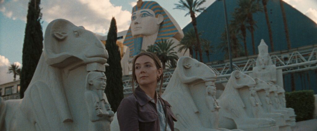 Coppola establishes early on that these characters exist far from Sin City’s prime time, as evidenced by a shot that shows them on a hotel rooftop that is actually not on the Strip, but rather, behind it. Similarly, she has chosen to shoot the picture in 16mm film stock, which allows for the anamorphic presentation to frequently have its images blurred along the edges. It is clear that the director is placing her focus on the emotion at center frame, while visually establishing the chaos of the world around its orbit. In this regard, the effect is mostly successful.