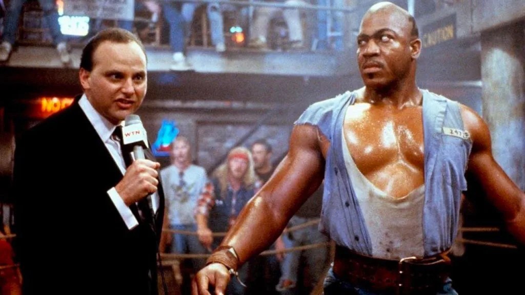 Consider that “The Battle of the Tough Guys,” which is frequently held at the trashiest dive bars imaginable or in warehouses that resemble steel mills, is supposed to be a fight contest without rules or referees. Yet its depiction is so cookie cutter and uninspired (you’ll be forgiven for thinking that a cheering dwarf in a cage is Peter Dinklage) that the only thing calling our attention is the constant questioning of what kind of lawless society would allow something like this to play out without batting an eye. And that addresses the film’s greatest peculiarity: The fact that it takes place in a world where pro wrestling is apparently as real as the backyard skirmishes that are vying for its audience. Though we see Rip in various areas of his personal life, at no point does the flick acknowledge the staged and scripted aspect of wrestling, opting instead to maintain the kayfabe beyond any logical explanation. By this rationale, we may as well take No Holds Barred as a slice of science fiction because it certainly does not unfold anywhere that remotely resembles reality.